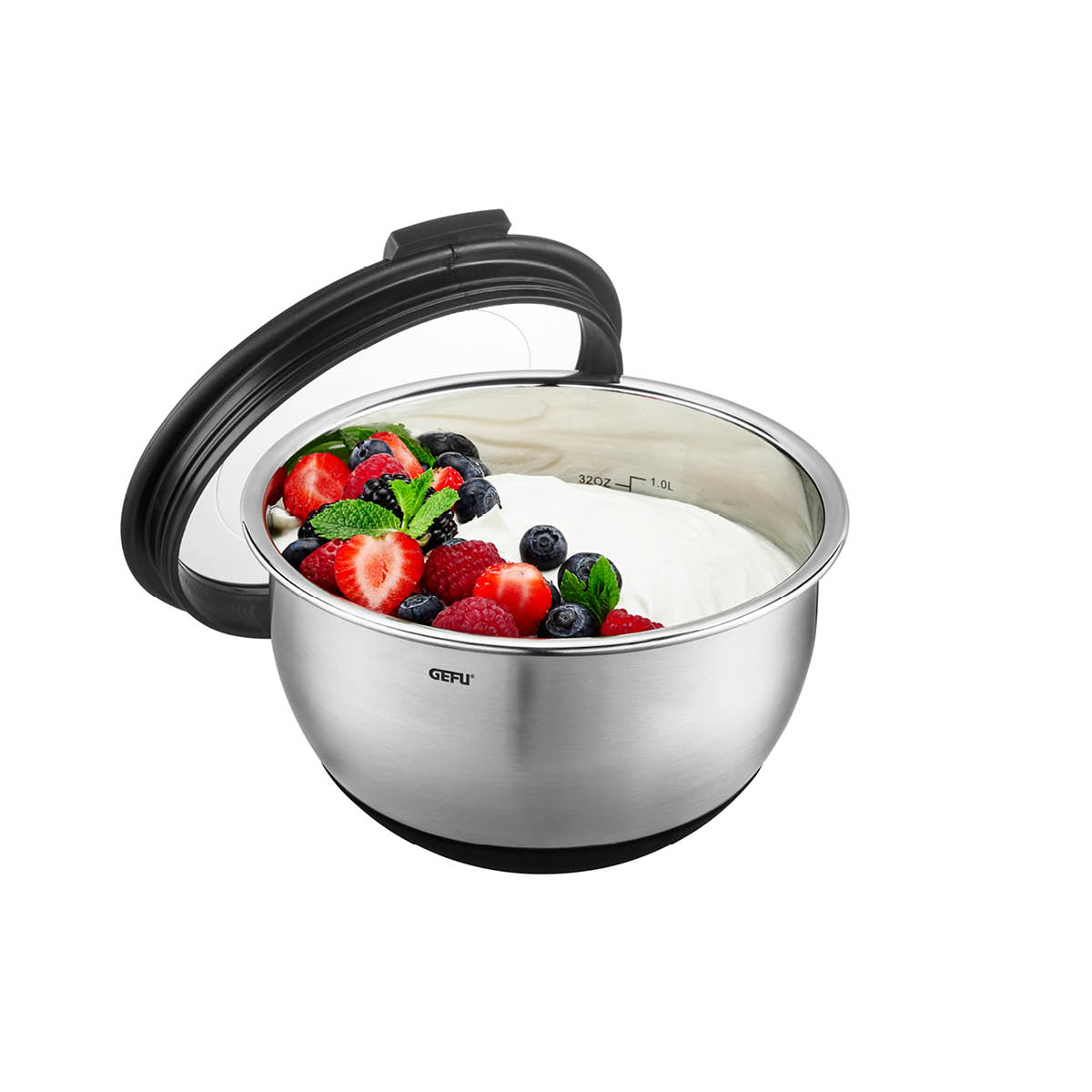 - VOLUMEN UND MASSE – Füllvolumen 2,5 Liter, Durchmesser 20,0 cm, H 13,2 cm / Füllvolumen 1 Liter, Durchmesser 16,0 cm, H 11,2 cm