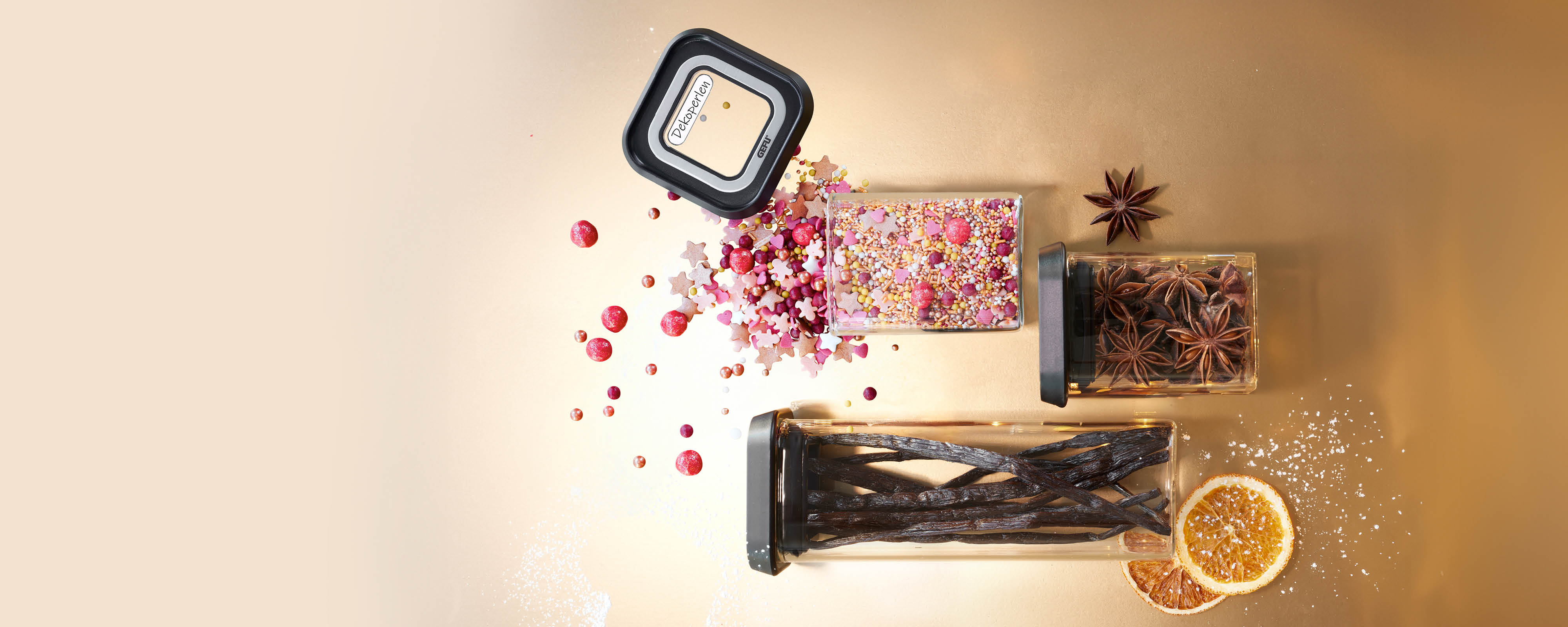 Der Alltag ruft – und das bedeutet: clever aufbewahren, länger genießen! Mit GEFU bist du bestens ausgestattet, um Lebensmittel frisch zu halten und Ordnung in deiner Küche zu schaffen. Entdecke unsere vielseitigen Aufbewahrungslösungen, die Funktion, Design und Qualität vereinen. Lass dich inspirieren und bring frischen Wind in dein Vorratsregal!